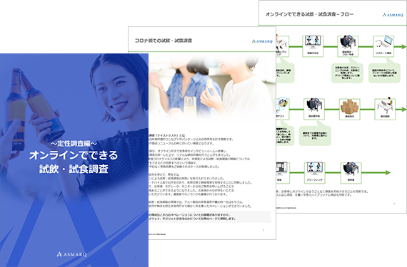 オフラインで実施する場合は、テスト製品の保管湿度や量の均一化はもちろん、製品の保存状況や製品を照らす室内灯まで、細かく気を遣ったオペレーションが当社では整っております。また、オンラインでの実施も行っております。この資料では、そのオンラインでの試飲・試食調査について、メリット・デメリットや調査フロー、調査事例、調査のコツをまとめました。