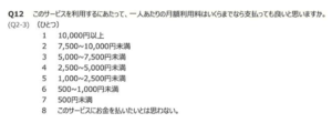 以下の設問のように、数値を選択肢として聞く設問(SA)の場合で、平均値を知るために