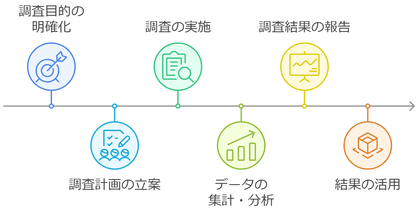 まず、何を明らかにしたいのか、どのような情報を得たいのか、具体的な調査目的を設定します。目的があいまいなまま調査を進めてしまうと、期待した結果を得られない可能性が高まります。