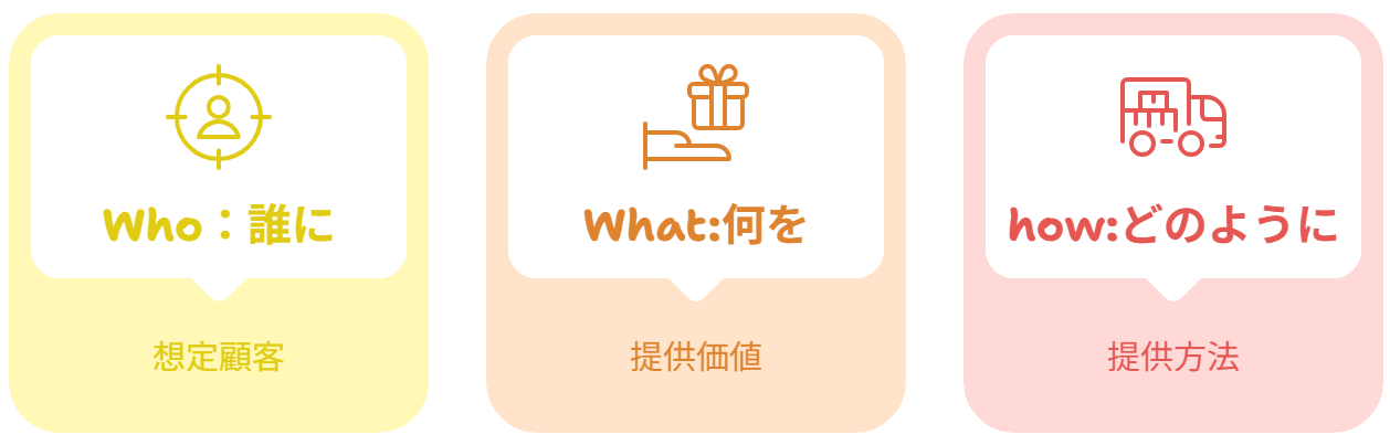 コンセプトとは、以下3点がまとまった商品やサービスの核となるものです。