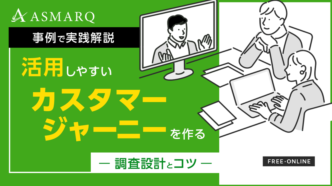 そこで今回は、リサーチのプロが有益なカスタマージャーニーを作るための「調査設計」について、準備段階~分析ステップまでをレクチャーします。セミナーでは「アスマーク」の事例を基に、実践形式で調査設計のコツとポイントをお届け。この機会に是非、自社戦略におけるカスタマージャーニー設計の精度が高まる、リサーチのフレームをご理解いただけますと幸いです。