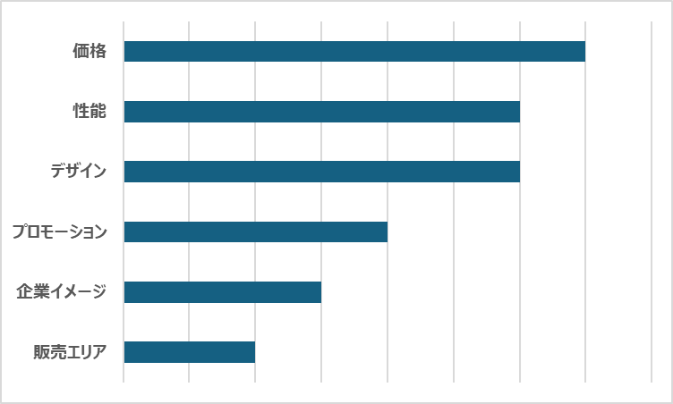 この図は、上から優先度が高い順に並べており、『価格』が一番重要ということがわかる図となります。