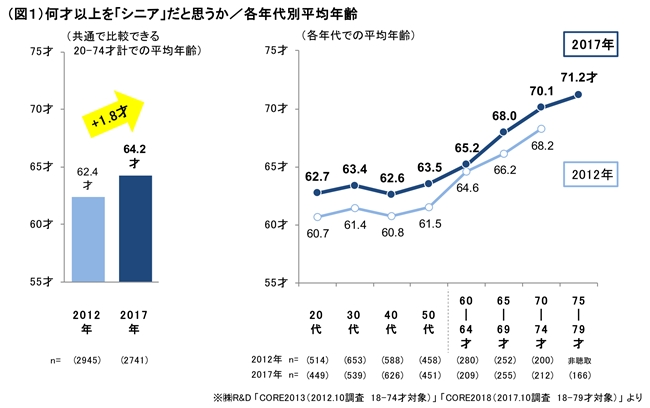 図 何歳以上を「シニア」だと思うか/各年代別平均年齢
