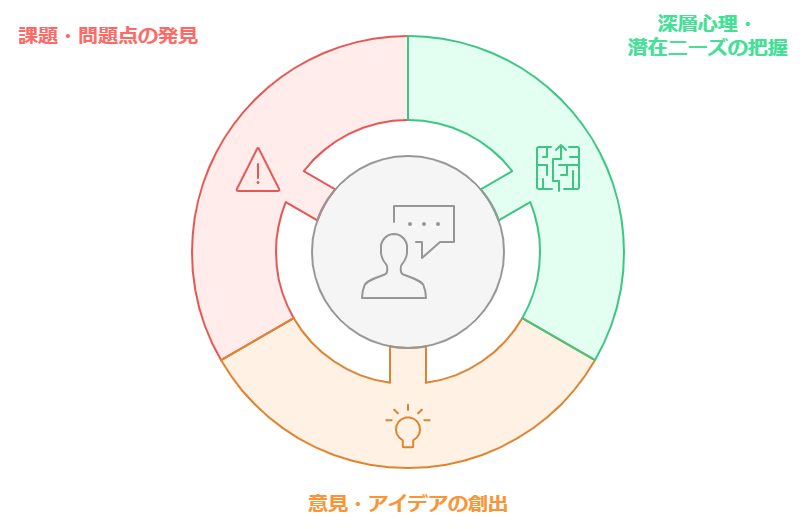 フォーカス・グループ・ディスカッションを実施する目的は、大きく分けて以下の3つに集約できます。