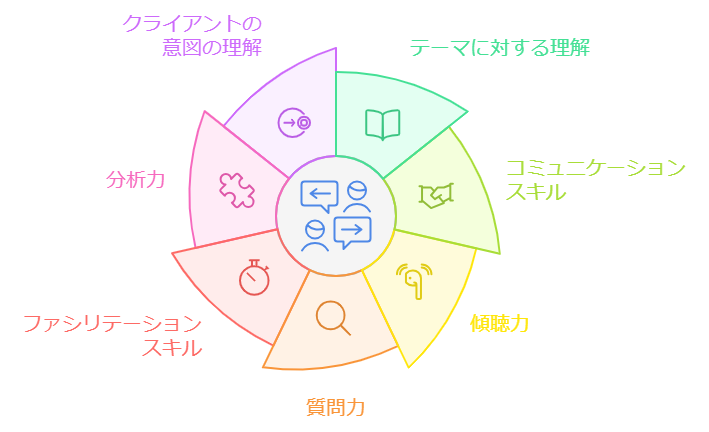 分析力:参加者の発言内容や表情、反応などを分析し、本質を見抜くことができる。