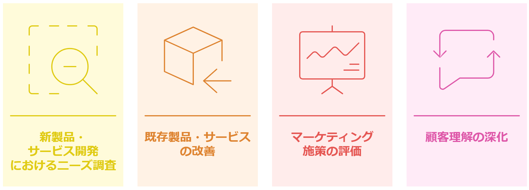 グループインタビューは、多様なシーンでその有効性を発揮する調査手法です。以下に代表的な活用例をご紹介します。