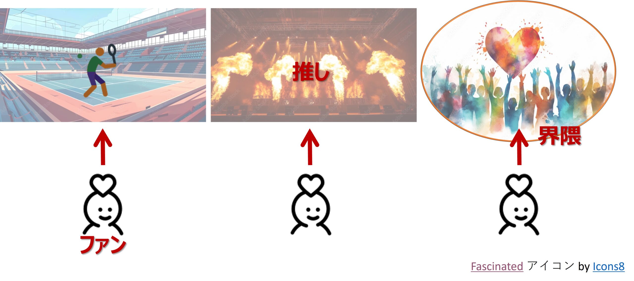 続きまして、「ファン」と「推し」と「界隈」の違いについて、お話してきます。