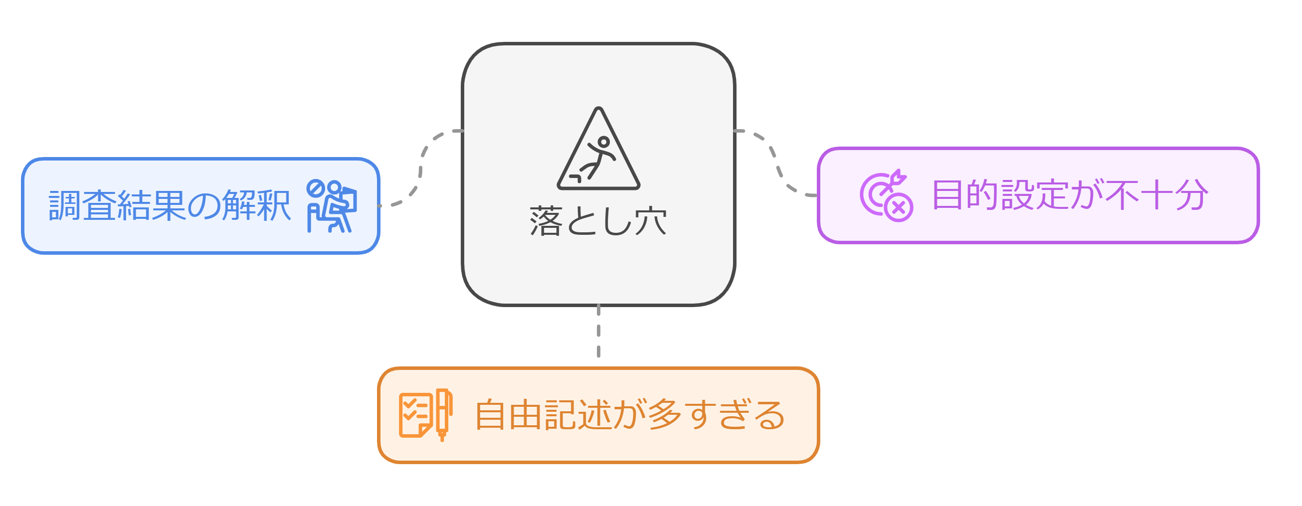 この問題を防ぐには、自由記述の役割を定量データでは補えない部分に限定し、全体のバランスを取ることが重要です。