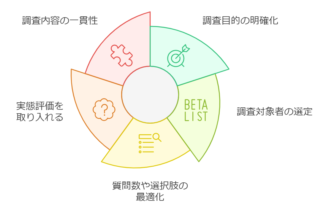 調査目的を具体的に設定し、そのあとの活用イメージまで落とし込んでおくことがポイントです。