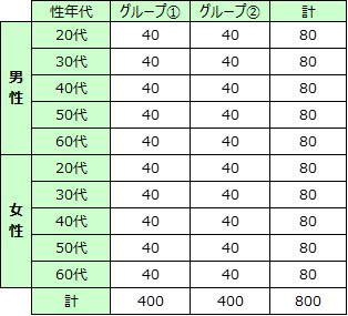| 回収数 | 本調査 | 800サンプル |