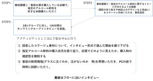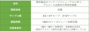 そこで当社では、オフライン調査の実施ガイドラインとして感染予防方針を定めつつ、代替策としてオンラインでの試飲試食調査の実現に努めました。