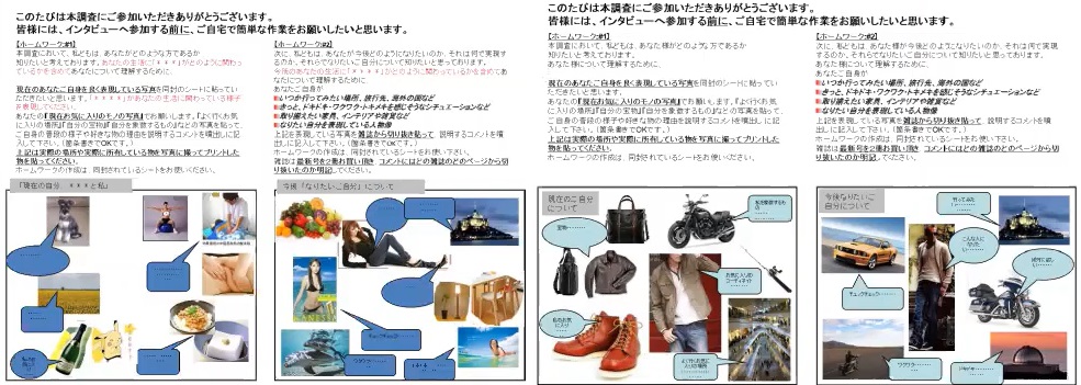 これを実施することで、調査対象者が事前に記憶を辿っていただいたり、考えを整理するきっかけになったり、考えを深めていただいたりと、調査に奥行きを作ることができ、うまく活用できれば、有意義な調査を行うことができます。