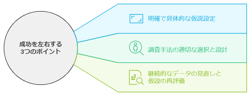 量的調査や質的調査を効果的に活用するためには、以下の3つのポイントが成功へのポイントとなります。