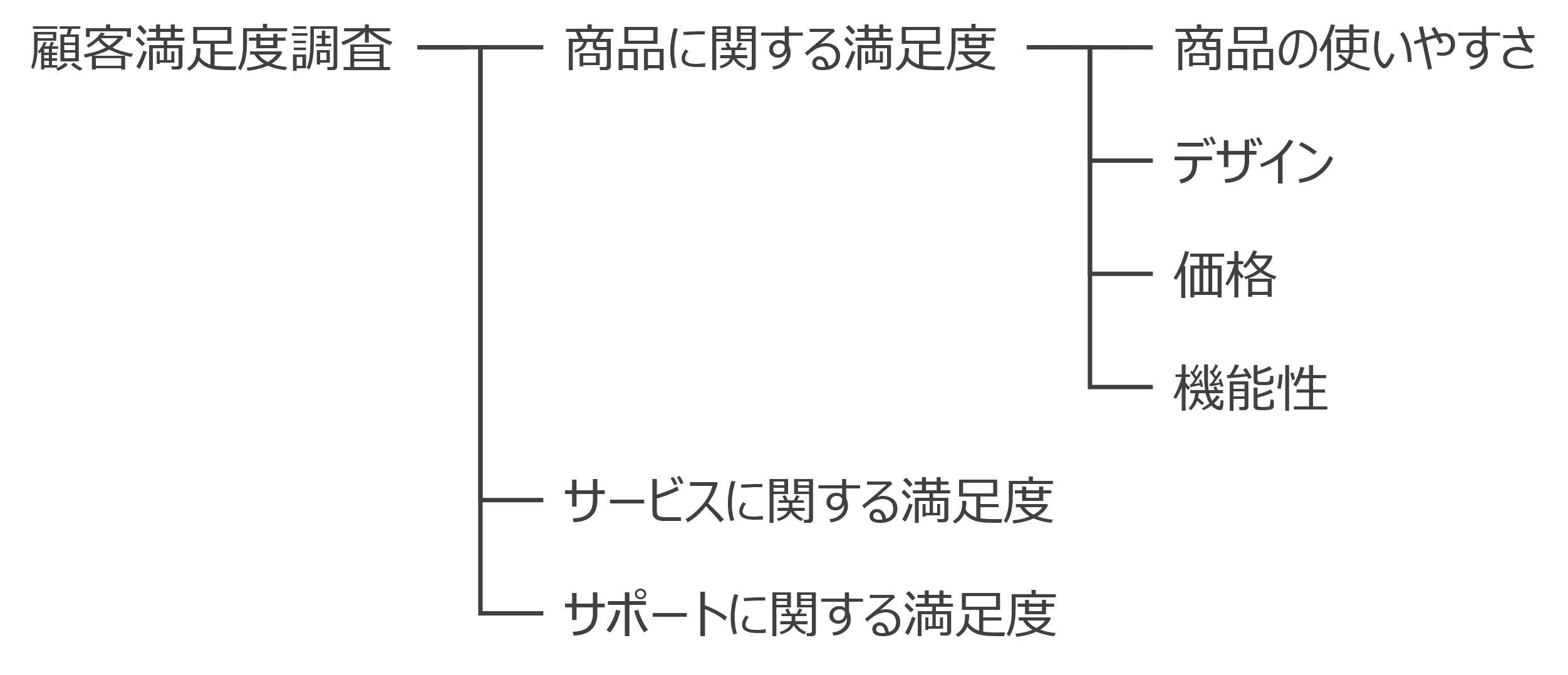 アンケートの目的が明確になったら、次は質問項目の決定です。質問項目は、収集したい情報を大きな項目に分け、次第に詳細な項目を考えていきます。そうすることで、質問すべき内容を具体的にイメージすることが可能です。例えば、「顧客満足度調査」であれば、「商品に関する満足度」「サービスに関する満足度」「サポートに関する満足度」といった大きな項目を設定します。次に、より詳細な質問項目として、「商品の使いやすさ」「デザイン」「価格」「機能性」といった項目を作成していきます。
