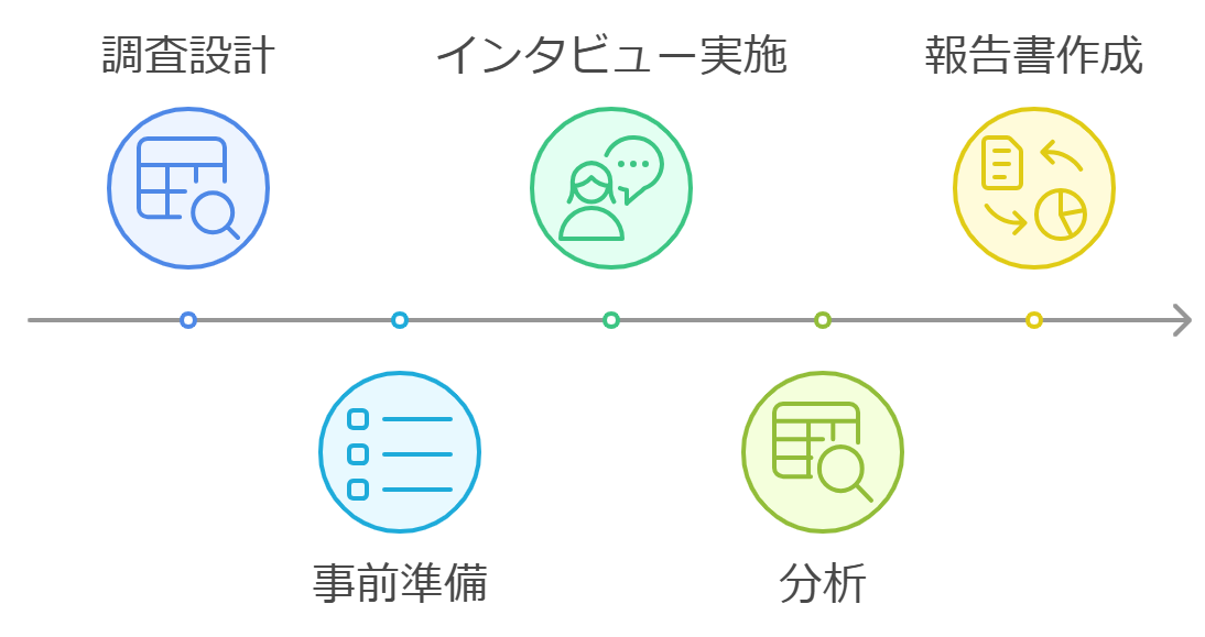 インタビュー調査は、事前準備から事後処理まで、いくつかの段階を経て実施されます。それぞれの段階で適切な対応を行うことで、質の高いデータ収集と分析が可能になります。