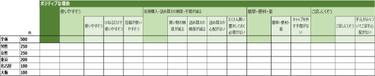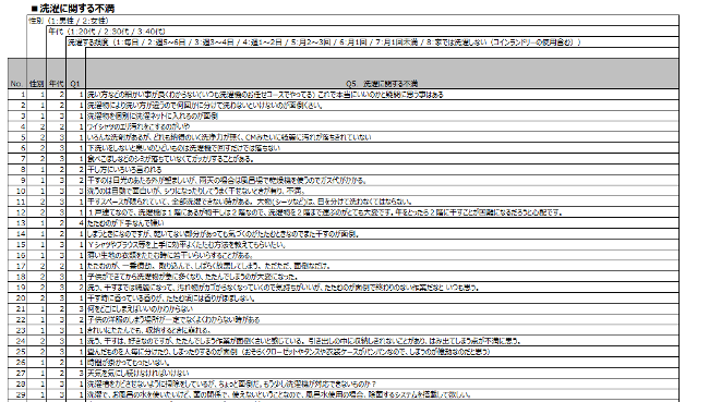 | 回答者の生の声を把握できる | 自由回答形式で得られたデータは、回答者の生の声であり、貴重な情報を含んでいます。アフターコーディングによって、これらのデータを体系的に整理すれば、より深い分析が可能となり、データの本質を見抜けるようになります。 |
