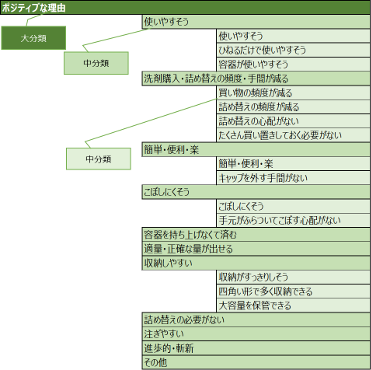 | 複雑なデータの可視化 | 自由回答形式のデータは、そのままでは複雑で解釈が難しい場合があります。このような場合に、アフターコーディングによってデータを整理・分類すれば、全体像を把握しやすくなり、グラフなどによる可視化もしやすくなります。 |
