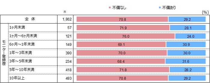 また、回答の不備という点でみると、モニター登録歴はほとんどの関係ない様子がみられました。