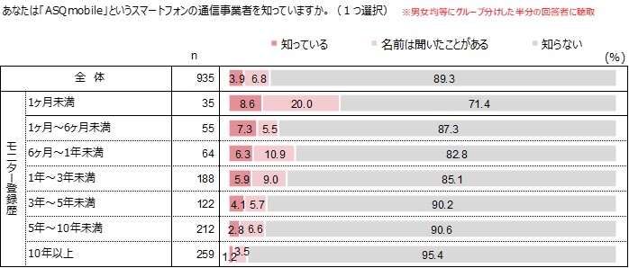 一方でモニター登録が10年以上ではほとんどの方が「知らない」と回答し、登録歴が長いほど「知らない」と回答する割合は高い傾向にあり、正確に回答している様子がみられます。