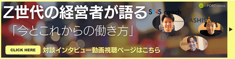 今を駆け抜けるZ世代の経営者3名による、約1時間の対談インタビュー動画を無料でご覧いただけます。トキ消費・コト消費といった概念を象徴とする”Z世代”。新しい価値観を持つ彼らの「仕事観」について、アスマークの自社システム「i-PORT voice」を用いて、オンライン対談形式でお届けいたします。
