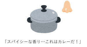 先述、後述の方法と比較すると料理の詳細については知ることが難しいと考えられます。同じカレーでもビーフカレーとポークカレーの差を香りのみで調査するのは難しいのではないでしょうか。また、刺激が弱い場合や香りの少ない料理の場合、匂いだけでは判別出来ない可能性があります。