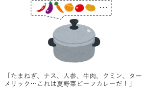 最後は今までと少しアプローチを変え、鍋の中にある素材達から料理を知ることが出来ないでしょうか?例えば、ニンジン、タマネギ、牛肉、クミン、ターメリック……調理鍋の中にある量、構成がわかれば料理が何であるか?どんな味であるか?詳細な状態まで調査することが出来るのではないでしょうか。