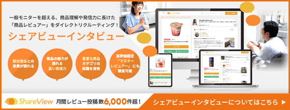 世の中に様々なレビューが溢れる中で、消費者が本当に参考になるレビューを見極めるのは難しいのでは?という疑問からスタートしました。調査会社ならではのデータ収集のノウハウを活かし、信憑性のあるレビューを収集し、消費者の参考になるレビューだけを掲載したサイト作りを目指したのがシェアビューです。