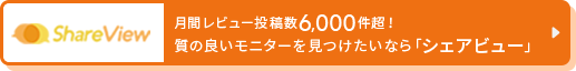 シェアビューは弊社で運営しているレビューサイトですが、世の中の様々な商品やサービスについて、写真と共にリアルな評価や感想をご投稿いただいています。2011年3月にスタートして、現在では2万7千人以上の会員の方に、累計で55万件以上のレビューをご投稿いただいています。