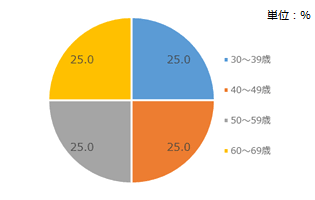 | 割付 | 男性 30 代: 40ss 、 男性 40 代: 40ss 、 男性 50 代: 40ss 、 男性 60 代: 40ss 女性 30 代: 40ss 、 女性 40 代: 40ss 、 女性 50 代: 40ss 、 女性 60 代: 40ss |