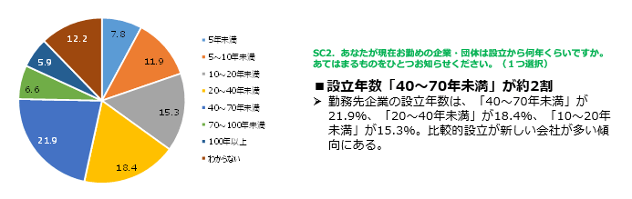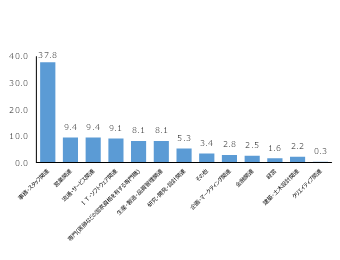 なお、今回の調査による業種別の構成比は「製造業」21.3%、「サービス業」15.6%、「医療・福祉」15.0%であり、職種別の構成比は「事務・スタッフ関連」37.8%、「営業関連」「流通・サービス関連」がそれぞれ9.4%となっている。