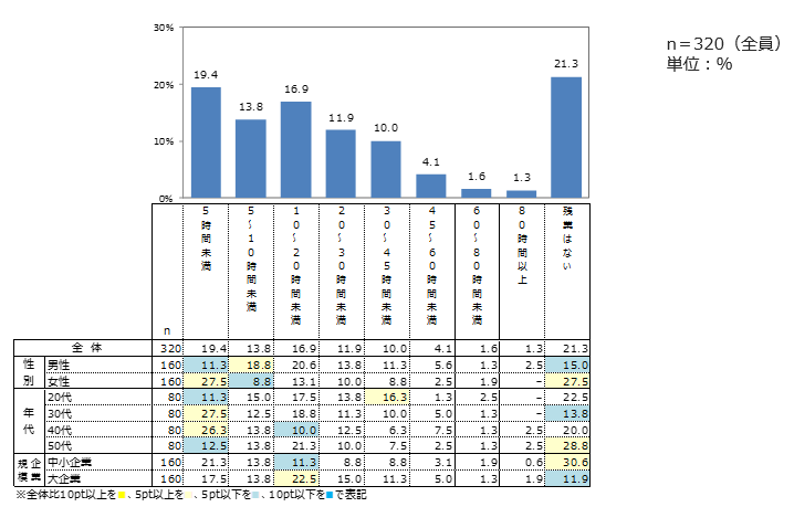 そこで今回は、「残業時間」についての消費者の様々な意識や状況について、アンケートを行った。