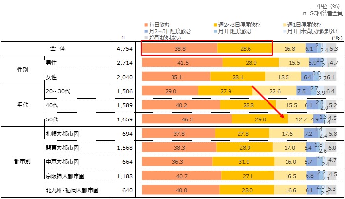 SC3.あなたは普段お酒を飲みますか。もっともあてはまるものをお知らせください。(1つ選択)