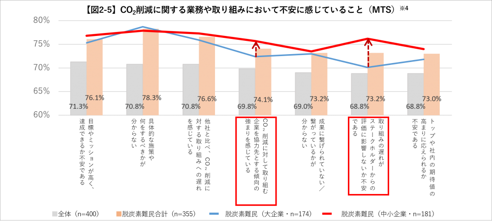 知識・経験不足によって陥りやすい「脱炭素難民」状態。自社の取り組み遅れに不安も