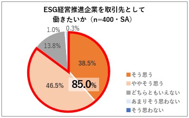 85.0%の担当者がESG経営を推進している企業を理想の取引先だと回答
