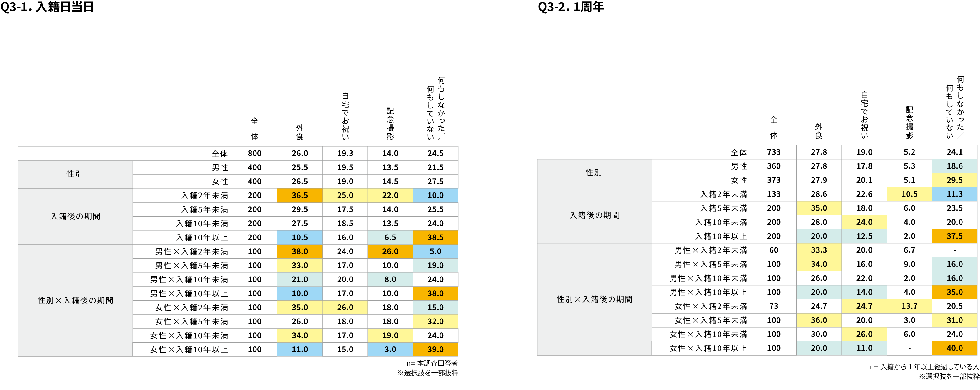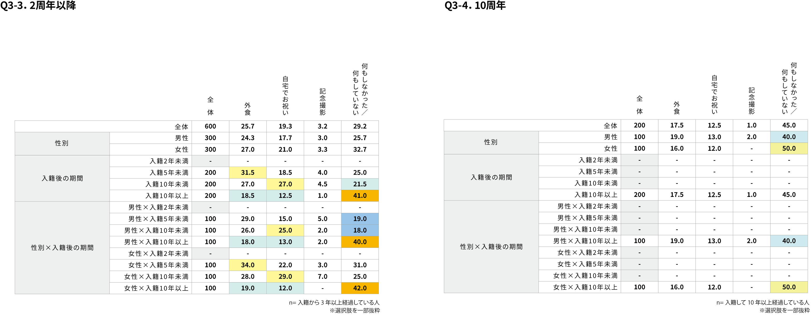 入籍から10年経過すると、お祝いごと自体をしなくなる傾向がみられる。