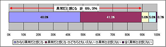 この夏の「暑さ」は、全体の(89.3%)の人が、異常だと感じている結果となった。