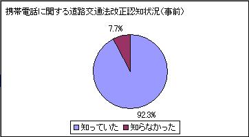 携帯電話使用に関する道路交通改正認知者は、実に92,3%となっており、関心が高いことがうかがえる結果となった。