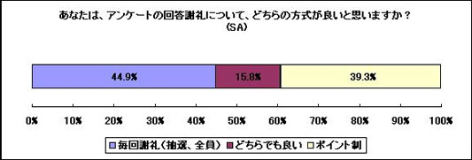 - 全体で、「毎回謝礼」の方が「ポイント制」を5%程度上回っている。