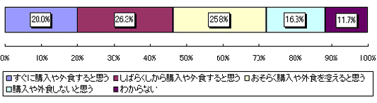 今後アメリカ産牛肉の輸入が再開された際の行動をたずねたところ、それぞれ意見が分かれる結果となった。その中でも「しばらくしてから購入や外食をすると思う」という回答が26,3%で他の意見をやや上回った。