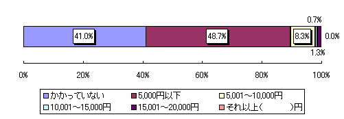 「かかっていない(0円)」と「5.000以下」を合わせると全体の90%弱を占め、全体的に医療費負担は、無いあるいは少ないことがわかる。