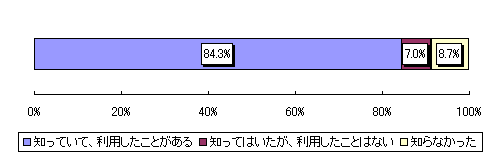乳幼児の医療費助成制度の認知・利用経験を聞いたところ、認知者は全体の91.3%とかなり認知されている結果となった。そのうち利用経験者は84.3%で、非利用経験者は7%であった。