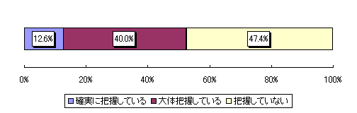 子供の医療費が無料であった時の本来掛かった費用の把握状況を聞いたところ、全体の半数強が「把握している」と回答し、半数弱が「把握していない」と回答した。