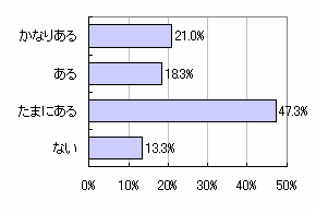 日常で、会社を辞めたいと思う意識状況を聞いたところ、「たまにある」が47.3%で半数を占める結果となっている。「かなりある」「ある」「たまにある」の「ある」を合計すると86,7%にも及ぶ結果となった。