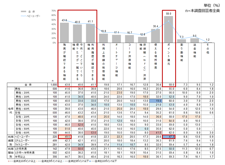 ヘビーユーザーでは、「ポイント還元」よりも『残高確認』の方が高い。