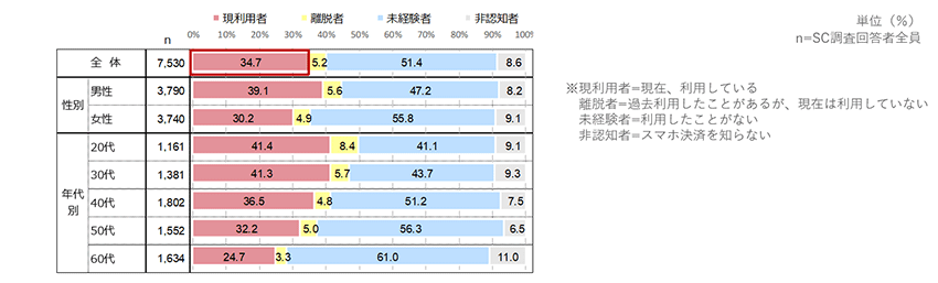 離脱者:スマホ決済を知っていて過去に利用したことがあるが、現在は利用していない人