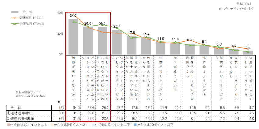プロテインの使用経験者は3割半ば、うち4割が離反、美味しさの追求と価格設定の見直しが課題