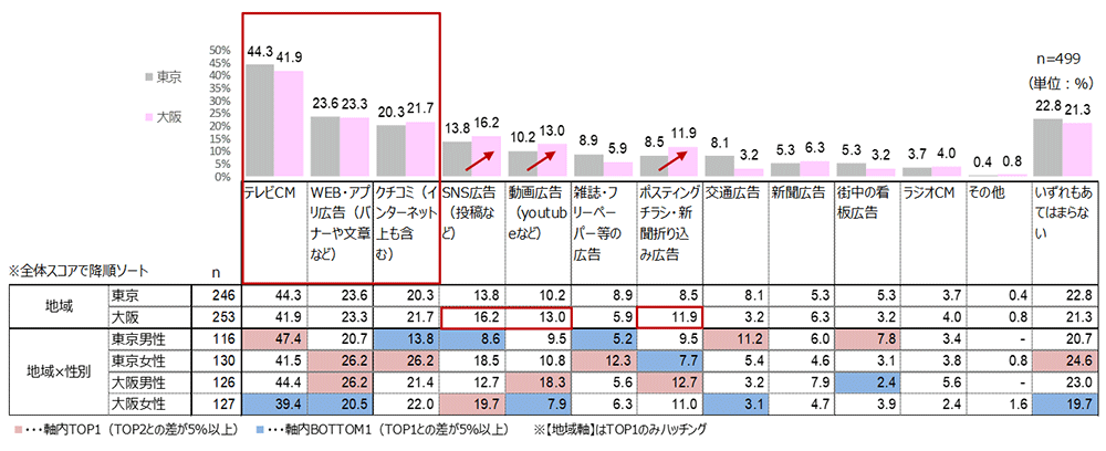 大阪は東京に比べて広告の接触をきっかけに商品を購入する人が多い