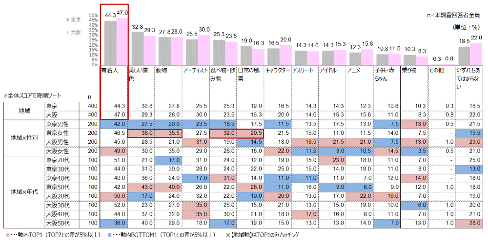 東西で大きな傾向の違いはなく、広告には有名人の起用が求められる