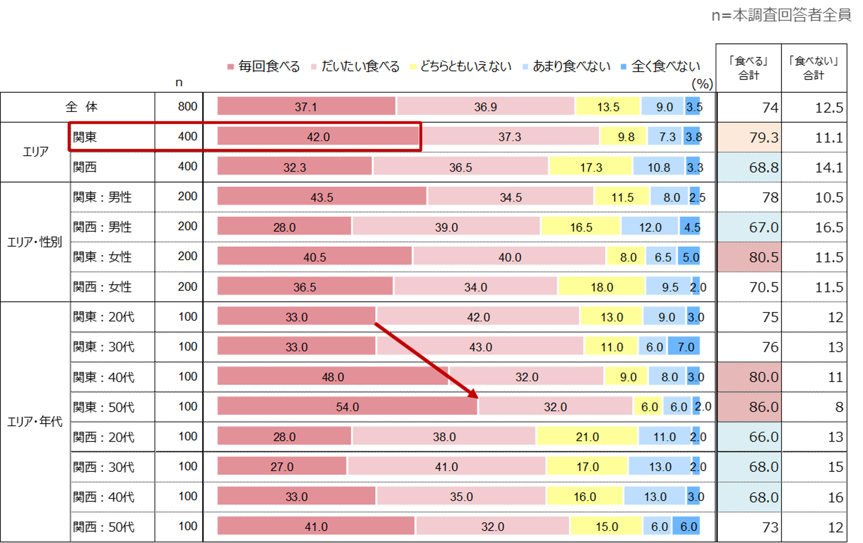 関東は”おつまみ”がマスト~関東では関西に比べ、おつまみを「毎回食べる」人が多い~