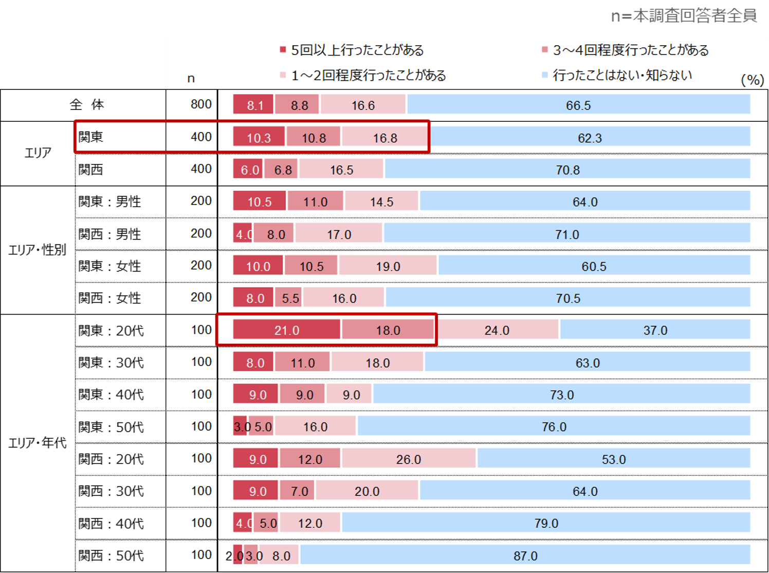 特に関東20代は3人に1人以上が、オンライン飲み会を「3~4回程度」と積極的に行っている。